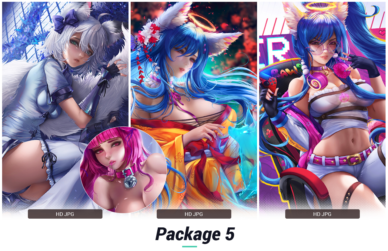 This is pretty much a way to get my past artworks, PSD files, artwork variants NSFW and SFW, HD artworks perfect as wallpapers, playmats or prints, include Brushes used for all pieces. All the characters depicted are 18+.